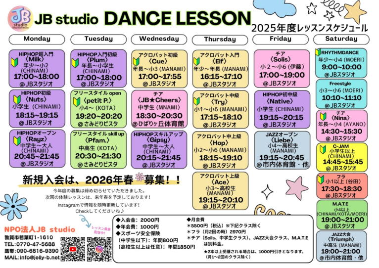 チア(Solis, Jrクラス)、JAZZ大会クラス、M.A.T.Eは別料金